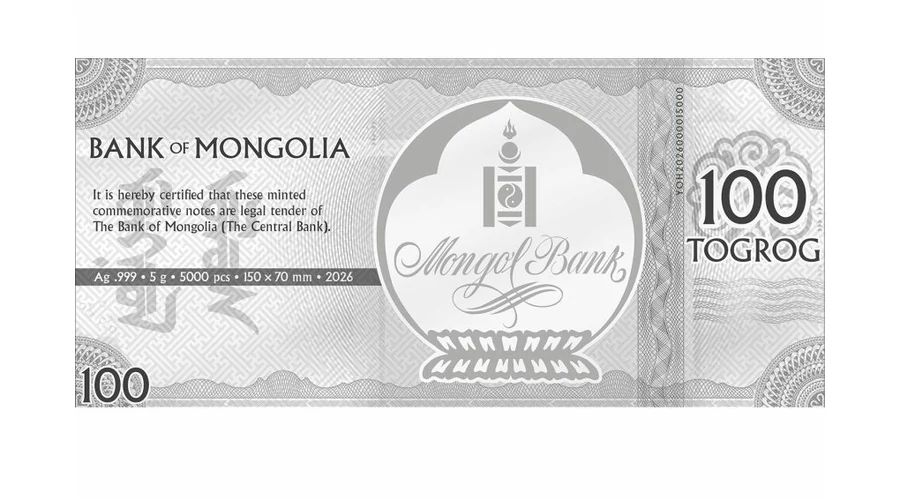 2026 a Ló éve lesz, 100 tugrik, ezüst, Mongólia, 2026