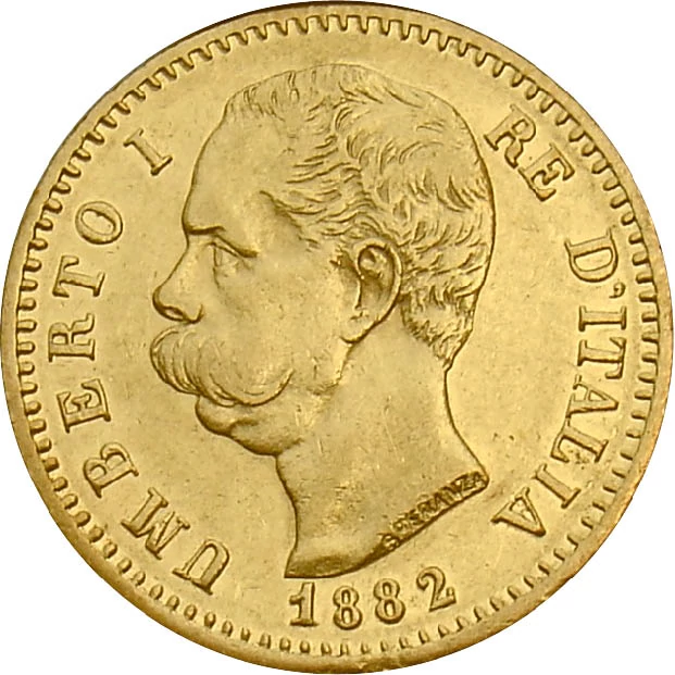 A király, aki három merényletet élt túl, 20 líra, arany, Olaszország, 1879-1897