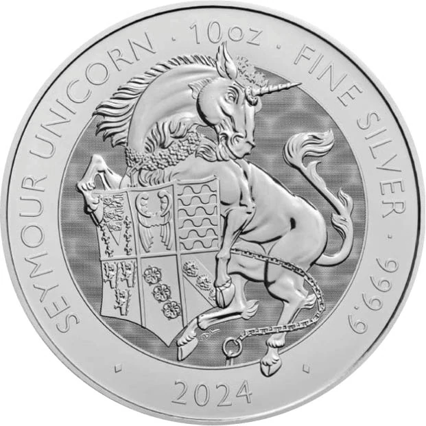 címerében. A kelta mitológiában az ártatlanság, a tisztaság, a boldogság, de emellett a férfiasság és a hatalom szimbóluma is. A királynő fenevadjai érmekollekció részeként 10 uncia súlyú érmén jelentették meg.