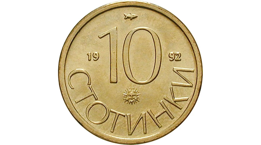 A rendszerváltás első forgalmi érméje, 10 sztotinka, Bulgária, 1992