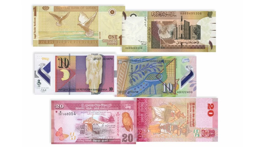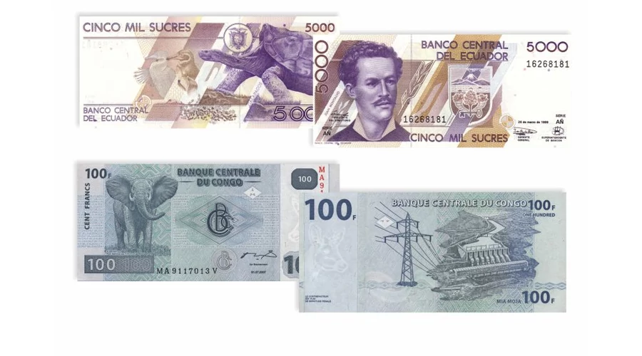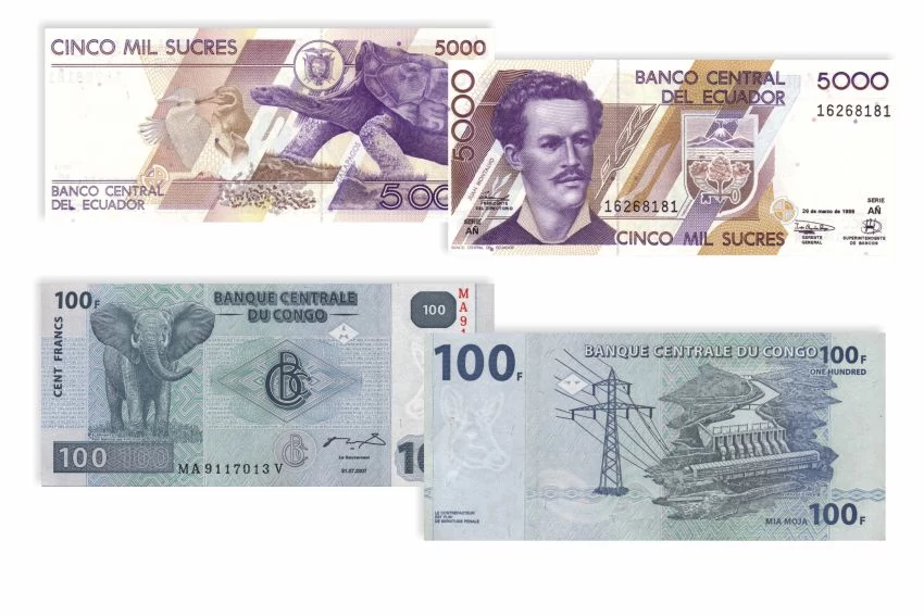 Amikor a pénz vonzza a szerencsét, különböző bankjegyek, Equador, Kongó, Szerbia, Szudán, Taiföld