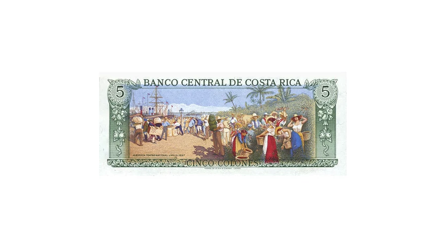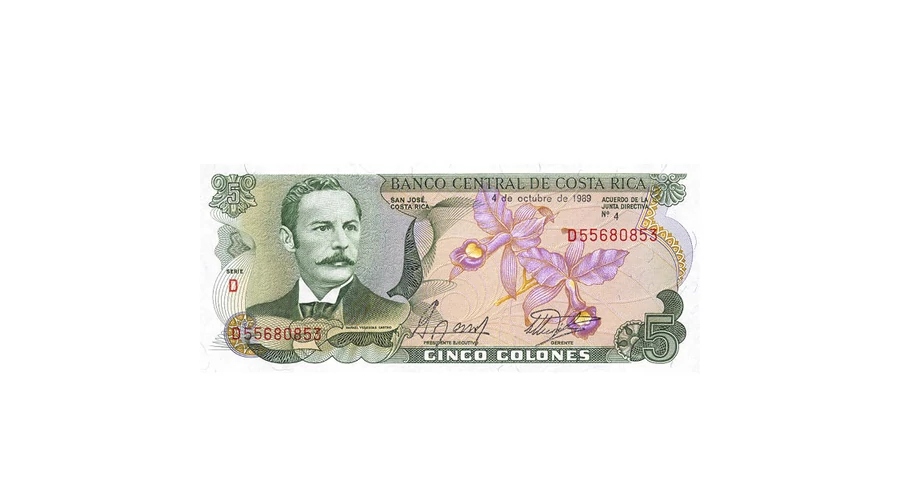 Az elnök, aki rákerült a maga alkotta pénzre, 5 colone, Costa Rica, 1977-1989