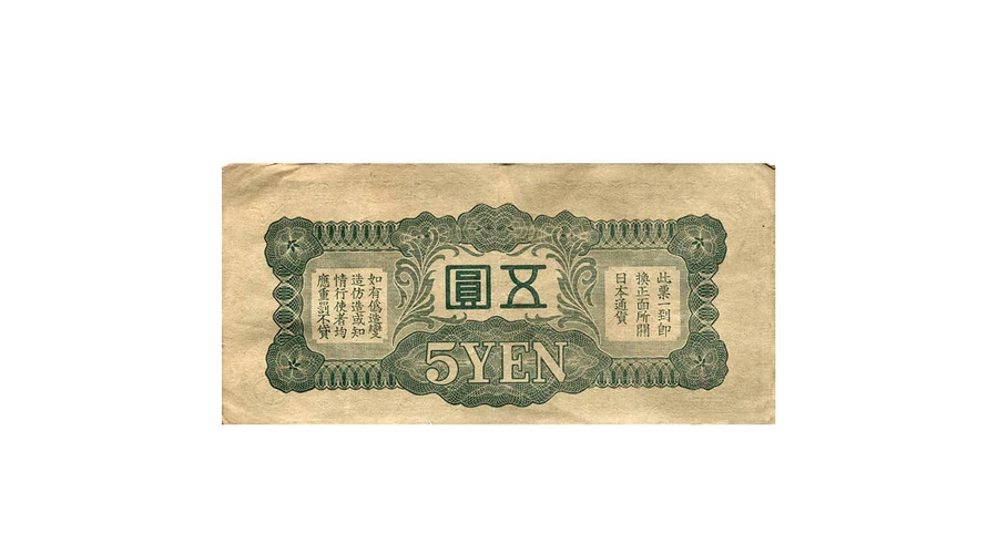 Japán 1937-ben megszállta Kína iparilag fejlett negyedét. A gyarmati sorsú Kínában japán közigazgatást vezettek be, mely kiterjedt a pénzrendszerre is. E korszak kínai bankjegyén a japán fölényt két