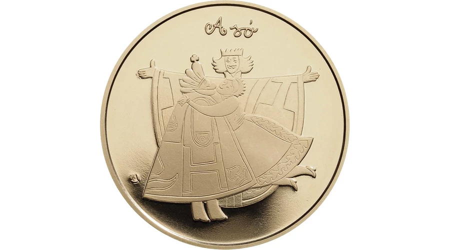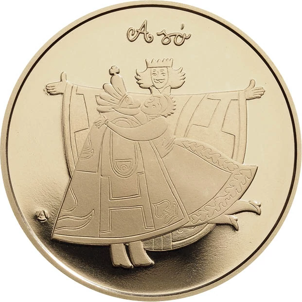 et felelevenítő érmesorozatnak. Akkor a só című mesét jelenítették meg. Előlapján népművészeti virágmotívumok és galamb látható a királyi vár mellett, hátlapja a konfliktus feloldásának jelenetét ábrázolja, a király és a királylány kibékülését.