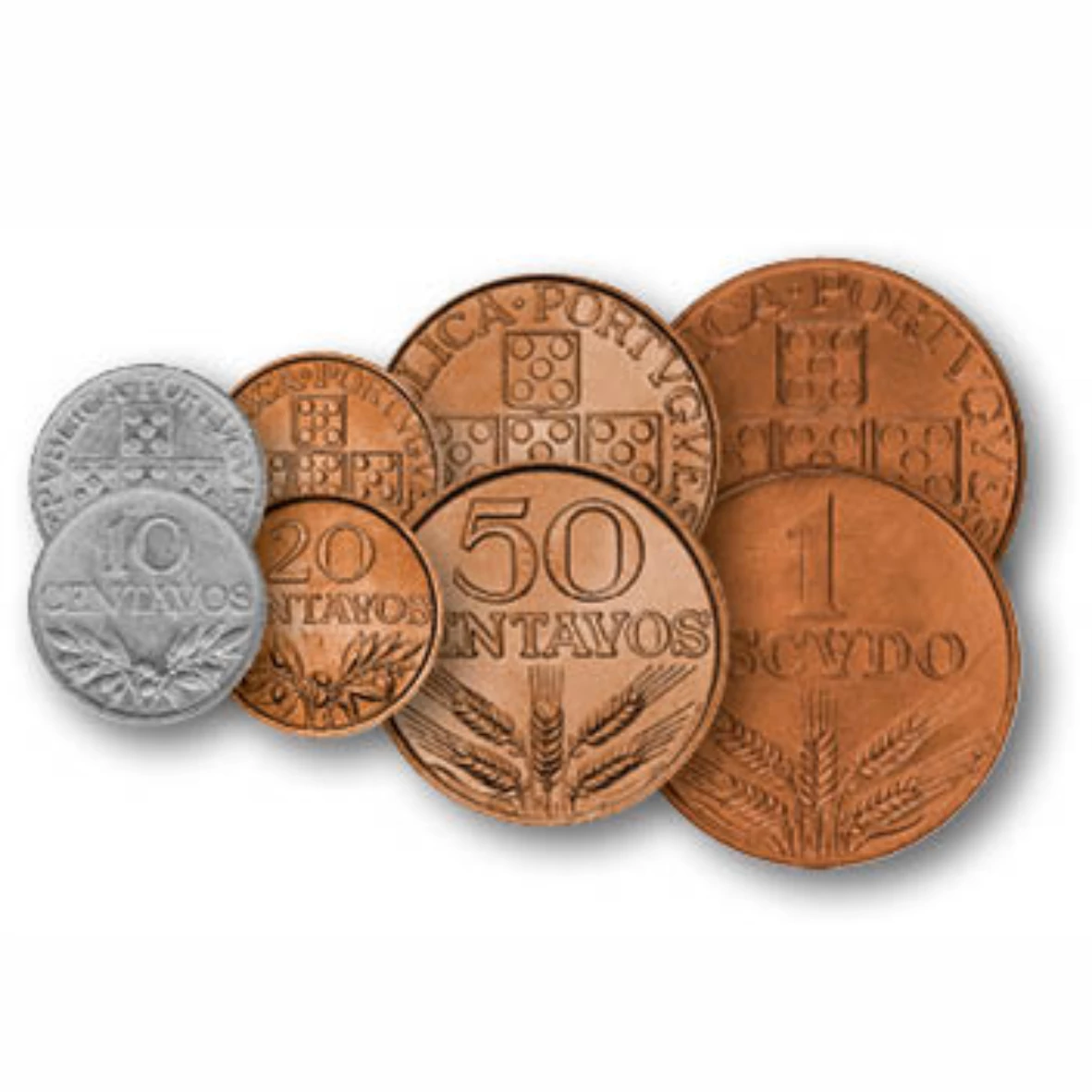 Nemzeti büszkeségek régi érméken, 10, 20, 50 centavo, 1, 2.50, 5, 10 escudo, Portugália, 1963-1986